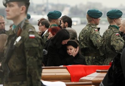 據(jù)報道,14日,載有30名遇難者靈柩的飛機抵達波蘭;15日,又有飛機搭載34名遇難者靈柩飛抵波蘭華沙一間軍用機場。這些被運回故鄉(xiāng)的遇難者當中,包括波蘭流亡總統(tǒng)卡丘羅夫斯基的遺體。