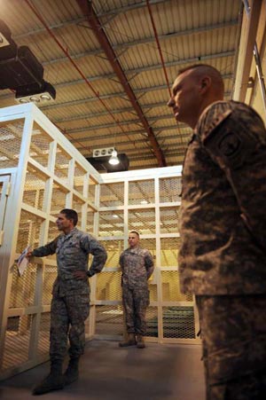 目前,巴格拉姆基地多數(shù)的恐怖疑犯都被囚于一個(gè)帳篷拘留所中,但在本月內(nèi)將會(huì)有六百四十名囚犯得以遷往環(huán)境較佳的帕爾旺拘留所。掌管這座“新關(guān)塔那摩”的美軍律師馬克.馬丁斯指,關(guān)塔那摩灣監(jiān)獄和伊拉克的阿布格里卜監(jiān)獄都被指違反法律,但帕爾旺拘留所將會(huì)被視為一座合理對(duì)待囚犯的監(jiān)獄,因?yàn)樗鼘?huì)秉持遵守法治和合理程序的兩大原則,并將致力協(xié)助囚犯在出獄后重新融入社會(huì)。他說(shuō)這是美國(guó)在對(duì)待恐怖疑犯上的“真正進(jìn)步”,而監(jiān)獄的運(yùn)作將會(huì)具有透明度。