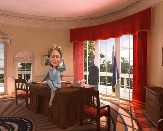 這段卡通片名為《動(dòng)畫(huà)人性》(Cartoon Personalities),是于15日在俄羅斯國(guó)家電視臺(tái)第一頻道播出的。這段動(dòng)畫(huà)生動(dòng)地展現(xiàn)了多位政治人物和明星的形象。片中,美國(guó)國(guó)務(wù)卿希拉里·克林頓一身天藍(lán)色套裝打扮,和平日里的著裝非常相似。不過(guò)希拉里卻是坐在白宮橢圓形辦公室的桌子上,一邊翹著二郎腿一邊打電話(huà),面部表情還很?chē)?yán)肅。