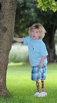 中新網(wǎng)7月29日電 英國一名3歲男童前年患上腦膜炎,要切除雙腿,最近他裝上1.25萬英鎊的仿生義肢,并重新學會走路。