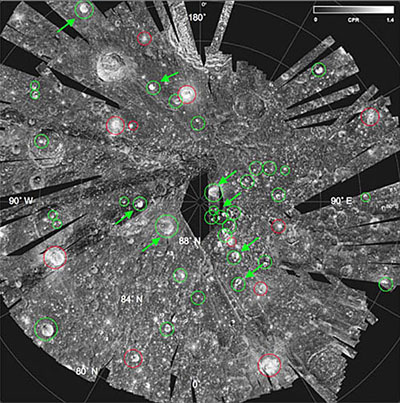Mini-Sar發(fā)現(xiàn)的北極附近的40多個(gè)隕坑里的水冰寬度不等,直徑從2公里到15公里之間。盡管不能測(cè)出隕坑的深度,但科學(xué)家說(shuō),這些水冰至少應(yīng)該在2米厚以上,才會(huì)讓月船一號(hào)測(cè)出。