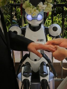 據(jù)報(bào)道,16日,一對(duì)日本新人在東京日比谷公園(Hibiya Park)一間餐館的開(kāi)放式屋頂上共結(jié)連理,面對(duì)50多名賓客主持婚禮的,不是人類,而是一款名為“I-Fairy”(小精靈)的“美女”機(jī)器人。