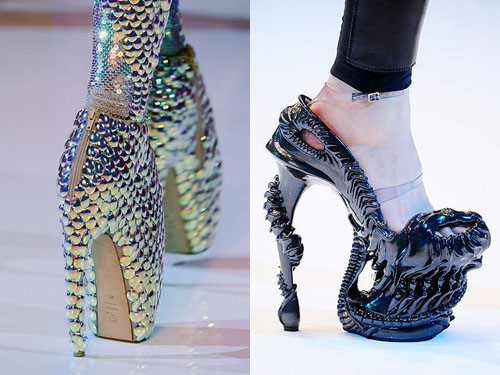 其實,早在1994年,名模娜歐蜜-坎貝兒(Naomi Campbell)穿著龐克教母薇薇安-魏斯伍德(Vivienne Westwood)設(shè)計的18公分高跟鞋走秀時,在舞臺上跌得四腳朝天,成為時尚界經(jīng)典一摔。然而,這次麥昆設(shè)計的鞋子又再高3英寸,導(dǎo)致名模們串連抗議。