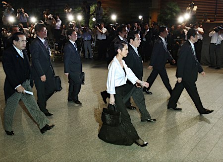 中新網(wǎng)6月9日電 當(dāng)?shù)貢r(shí)間8日,日本新首相菅直人組成新內(nèi)閣:前外務(wù)大臣岡田克也等11名閣僚留任,行政改革擔(dān)當(dāng)大臣蓮舫等3名閣僚為內(nèi)閣中的新人,前財(cái)務(wù)副大臣野田佳彥等兩名官員獲得升遷。