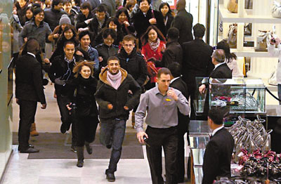 中新網(wǎng)12月28日電 前日是圣誕拆禮物日,英國(guó)倫敦城西名店早在網(wǎng)上事先張揚(yáng)這天舉行瘋狂大減價(jià),Gucci等名牌全部半價(jià)銷售,加上英國(guó)下周將征收17.5%的增值稅,50萬(wàn)人前日出動(dòng)掃平貨,有些早在清晨時(shí)分在名店外排隊(duì)等開門,期間出現(xiàn)插隊(duì)、推撞等混亂場(chǎng)面,要?jiǎng)跓┚瘑T出動(dòng)維持秩序。