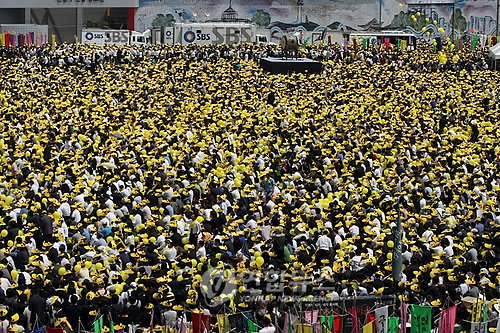 中新網(wǎng)5月29日電 據(jù)韓聯(lián)社報道,29日的首爾廣場“人山人海”,大批韓國民眾自愿前來參加前總統(tǒng)盧武鉉的遺體告別儀式。