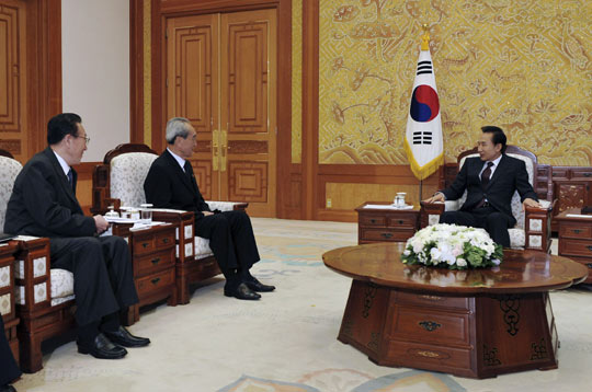 李明博從當(dāng)天上午9時(shí)開(kāi)始接見(jiàn)朝鮮勞動(dòng)黨中央書(shū)記金己男和統(tǒng)一戰(zhàn)線部部長(zhǎng)金養(yǎng)建等一行,就最近的朝韓關(guān)系廣泛地交換了意見(jiàn)。