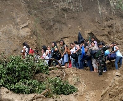 在菲律賓碧瑤市,數(shù)千名絕望的居民在山體滑坡后的懸崖邊艱難地攀爬,試圖找到出路,或尋求支援。碧瑤市已和外界完全隔離長達2天,空軍只好空投食品、物資給災民。