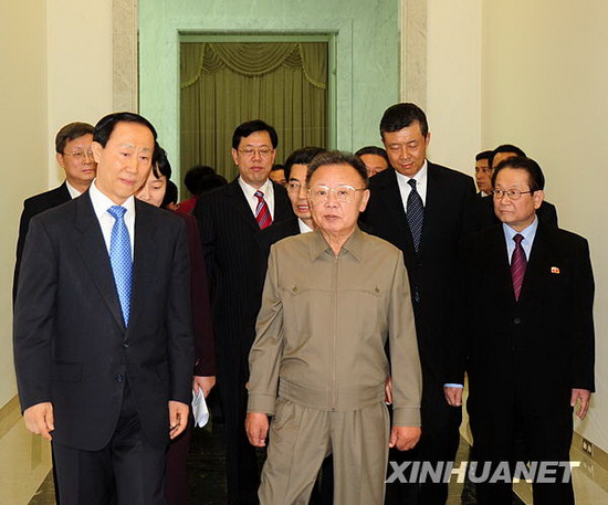 朝鮮勞動(dòng)黨總書記、國(guó)防委員會(huì)委員長(zhǎng)金正日8日在咸鏡南道咸興市會(huì)見(jiàn)了正在朝鮮進(jìn)行友好訪問(wèn)的中共中央對(duì)外聯(lián)絡(luò)部部長(zhǎng)王家瑞一行。