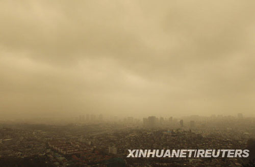 中新網(wǎng)3月22日電 據(jù)韓國(guó)《朝鮮日?qǐng)?bào)》報(bào)道,上周末,韓國(guó)全境遭到史無(wú)前例的最厲害的“超級(jí)沙塵”襲擊。這場(chǎng)沙塵暴20日下午來(lái)襲,持續(xù)到21日凌晨,韓國(guó)全境被黃黃的沙塵吞沒(méi)。