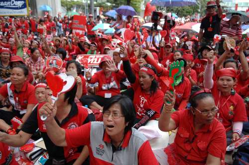 中新網(wǎng)4月6日電 綜合媒體報(bào)道,泰國(guó)反政府“紅衫軍”第三天占領(lǐng)曼谷市心臟地帶,并派出支持者沖入選舉委員會(huì)大樓,6日準(zhǔn)備到政府宣布的其它“禁止區(qū)”游行,還打算在市區(qū)“歡度”潑水節(jié)到20日之后,泰國(guó)潑水節(jié)預(yù)計(jì)將損失100億泰銖(約合3億美元)。