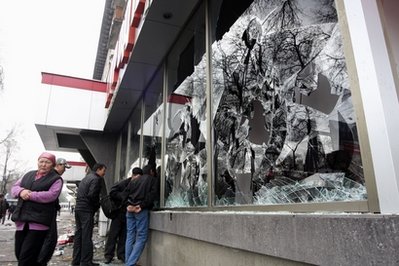 較早時盛傳內(nèi)政部長孔甘季耶夫被一群示威者襲擊及殺死,但內(nèi)政部已經(jīng)作出否認(rèn)。據(jù)悉孔甘季耶夫遭示威者毆打,被逼高喊“打倒巴基耶夫”的口號。目擊者說,比什凱克的市面仍然混亂,多處地區(qū)均發(fā)生滋事分子搶掠事件,又到處放火,軍警開槍鎮(zhèn)壓。
