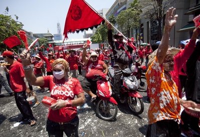 泰國政府表示正尋求與紅衫軍談判,以結(jié)束政治危機(jī)。但紅衫軍堅持阿披實(shí)須立即解散國會,若他答應(yīng),示威者將實(shí)時回家。約500名親政府黃衫軍昨日聚集于勝利紀(jì)念碑,呼吁紅衫軍回家。