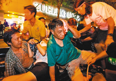 炸彈攻擊發(fā)生后,親政府群眾在是隆路緊急解散,曼谷天鐵與地鐵晚間也緊急宣布停止運(yùn)輸服務(wù)。軍方封鎖是隆路,商店也都關(guān)門。電視畫面顯示,好幾輛救護(hù)車飛奔現(xiàn)場將傷者送至醫(yī)院。首相阿披實(shí)緊急召開安全會議,商討對策。