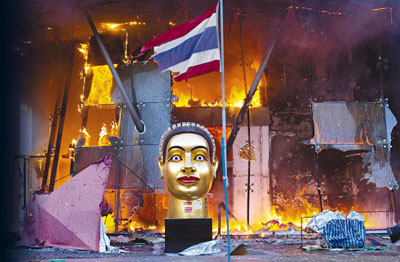 中新網(wǎng)5月20日電 據(jù)香港《文匯報(bào)》報(bào)道,泰國軍方19日清場,希望將陷入內(nèi)戰(zhàn)邊緣的曼谷拯救出來,雖然紅衫軍節(jié)節(jié)敗退,但有激進(jìn)分子未肯罷休,四處放火,電視臺、股票交易所、電力公司、幾間銀行、商場戲院都遭殃,商場和便利店亦成為搶掠目標(biāo)。據(jù)報(bào)曼谷有27處地方起火,泰國最大的商場Central World、Siam Square和Siam Paragon三大購物中心被縱火,其中Central World燒通頂,據(jù)報(bào)快將倒塌。
