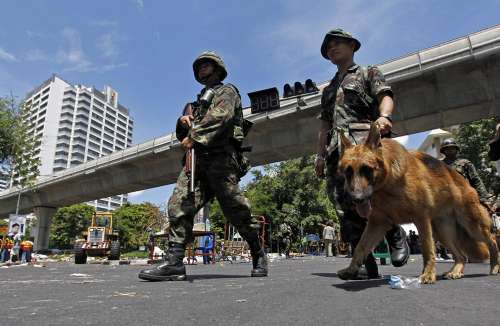 由于軍方早前在四季酒店內(nèi)曾經(jīng)發(fā)現(xiàn)爆炸品,軍隊帶同犬只搜索紅衫軍有沒有留下危險物品。泰國軍方表示,恢復(fù)曼谷市面秩序的行動于下午4時結(jié)束,之后清掃街道等工作將移交給曼谷市當局。此外,軍隊和民眾21日早上開始對除拉差巴頌地區(qū)以外的紅衫軍集會地區(qū)的街道進行清掃,拆除路障。