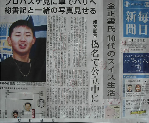 日本《每日新聞》14日在頭版中報道稱,該照片是金正云化名為“樸云”在瑞士波恩公立中學(xué)就讀7年級時,與同班同學(xué)一起拍的照片。照片中的金正云一頭短發(fā)、身穿黑色運(yùn)動T恤、胸前戴著金項(xiàng)鏈。