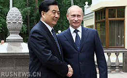 普京17日在新奧加列沃接待中國(guó)國(guó)家主席胡錦濤時(shí)表示,“盡管發(fā)生了國(guó)際金融經(jīng)濟(jì)危機(jī),但我們兩國(guó)之間的關(guān)系沒有受到當(dāng)前任何政治和經(jīng)濟(jì)局勢(shì)的損害”。
