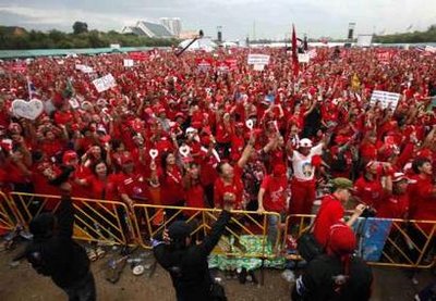 四月份泰國(guó)發(fā)生的長(zhǎng)達(dá)兩星期的反政府示威活動(dòng)導(dǎo)致一百多人受傷,兩人死亡。 那場(chǎng)大示威還迫使本來(lái)要在泰國(guó)舉行的東盟峰會(huì)取消,導(dǎo)致首都曼谷部分地區(qū)陷于癱瘓。泰國(guó)當(dāng)局因此下令曼谷進(jìn)入緊急狀態(tài),還對(duì)14名示威領(lǐng)導(dǎo)人發(fā)出逮捕令,其中包括流亡的前總理他信。