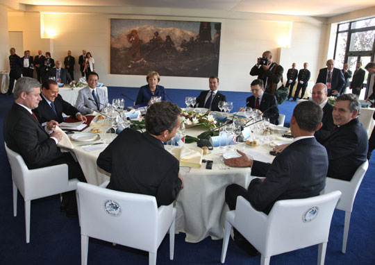 當(dāng)前八國集團的輪值主席是意大利總理貝盧斯科尼。八國集團領(lǐng)導(dǎo)人將舉行工作會議,就核不擴散、反恐以及阿富汗、伊朗和中東問題等廣泛的全球性議題進行磋商。本屆峰會期間,八國集團將在貿(mào)易問題上與中國、巴西、印度、墨西哥和南非等發(fā)展中五國以及埃及展開商談。