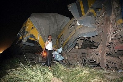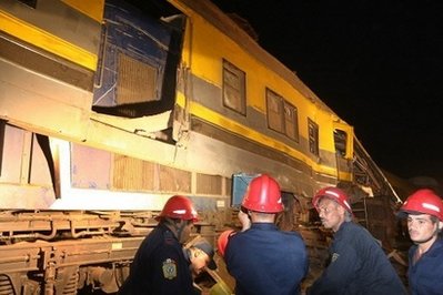 一列預(yù)定前往南方阿斯旺(Aswan)的火車(chē),24日行駛到開(kāi)羅附近40公里的吉薩(Giza)時(shí),遭另一列火車(chē)從后方追撞,造成其中一節(jié)車(chē)廂翻覆。由于出事地點(diǎn)靠近運(yùn)河,救難人員必須以樹(shù)干搭起克難的橋梁,將傷者從火車(chē)上救出。