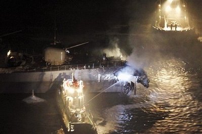 中新社東京十月二十七日電 (記者 朱沿華)二十七日晚當(dāng)?shù)貢r(shí)間七點(diǎn)五十六分前后,日本海上自衛(wèi)隊(duì)護(hù)衛(wèi)艦“KURAMA”號(hào)與韓國(guó)籍集裝箱船“CARINA STAR”號(hào)相撞著火,至少有三名自衛(wèi)隊(duì)隊(duì)員在此次事故中受傷。