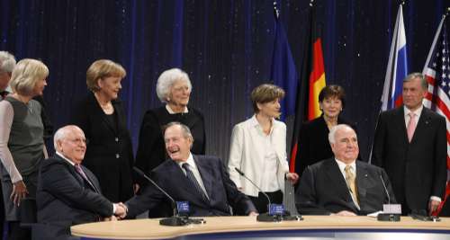 紀(jì)念活動主辦方贊揚老布什與戈爾巴喬夫分任美蘇領(lǐng)袖時,對拆除柏林墻及促成兩德統(tǒng)一的貢獻(xiàn),還贊揚德國前總理科爾“抓住關(guān)鍵的一刻”,促成德國統(tǒng)一。