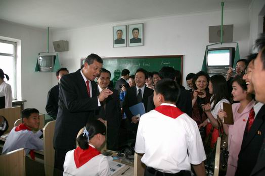 中新網(wǎng)6月18日電 中國駐朝鮮大使館網(wǎng)站消息,6月17日,素有朝鮮“秀才學!敝Q的東平壤第一中學里歡聲笑語、氣氛熱烈。該校紀念“毛澤東班”命名50周年的活動正在舉行。朝中友協(xié)副委員長兼朝鮮對外文委副委員長田英進、北京五中代表團的師生們出席了紀念活動。中國駐朝鮮大使劉曉明率使館外交官也應邀出席。