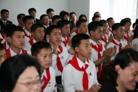 劉大使說,毛澤東主席曾說:“你們青年人朝氣蓬勃,正在興旺時期,好像早晨八九點鐘的太陽。希望寄托在你們身上。”金日成主席也說過:“青年是我們革命事業(yè)的接班人和未來的主人!痹谧母魑煌瑢W,你們今天風華正茂、是祖國的花朵,明天將百舸爭流、勇挑重擔,成為國家的棟梁。中朝傳統(tǒng)友誼需要你們?nèi)フ湎Ш屠^承,中朝睦鄰友好合作關(guān)系的未來需要你們?nèi)ジ藕蛣?chuàng)造。我希望并相信,中朝兩國青少年一代將不辜負兩國老一輩革命家和兩國人民的期望和重托,刻苦學習,奮發(fā)進取,報效祖國和人民。