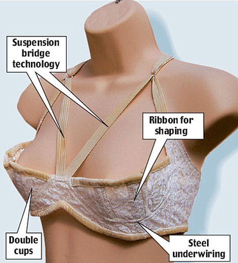 “Fling”屬半杯罩,特色在于完美貼身設(shè)計(jì),且以額外橡筋在肩膀與罩杯之間形成三角形,以達(dá)至“谷胸”效果。它甚至還可在罩杯外加裝“外杯”,令夢露的胸部曲線更加驚人。