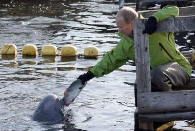 除了展現(xiàn)男子氣概,普京近年亦用心營造柔情一面。俄政府發(fā)聲明表示,普京7月31日到了俄羅斯遠東地區(qū),穿起潛水衣,在太平洋的契卡洛夫島為一條白鯨裝上衛(wèi)星追蹤器。這是一個白鯨遷徙模式研究的一部分。普京當時問:“她不會咬人吧?”他其后更幫手喂飼其他白鯨。普京當日又到700公里外的哈巴羅夫斯克市,出席一條新天然氣輸氣管的啟用儀式。