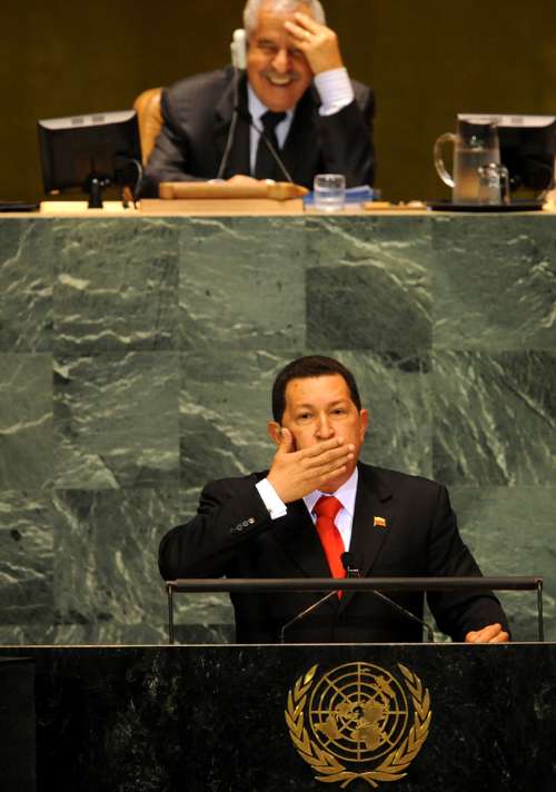 他更打趣說:“奧巴馬,來加入社會主義者行列吧,我們在此邀請你加入邪惡軸心國。”查韋斯促請奧巴馬撤銷對古巴實施的禁運,以及放棄在哥倫比亞建立美軍基地。他在國內(nèi)發(fā)表的演說往往是馬拉松式的長篇演說,這次的聯(lián)大演講亦超過一小時,不過他保證自己不會說得像利比亞領(lǐng)袖卡扎菲那么長。此言一出,臺下報以陣陣笑聲;卡扎菲前一天的聯(lián)大演說長達逾一小時半。