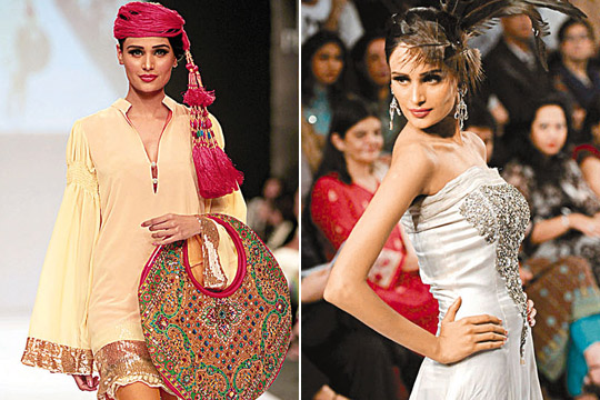模特兒穿上當(dāng)?shù)卦O(shè)計(jì)師力作逐一亮相,當(dāng)中包括巴基斯坦傳統(tǒng)特色衣裙,配以閃耀的衣飾;又或戴上罩袍式頭罩,同時(shí)展露雙肩及臂上的紋身圖案;男的穿上鑲滿(mǎn)珠片的上衣配以短褲。模特兒袒胸露臂、展露美腿,有設(shè)計(jì)師甚至加入巴國(guó)混亂局勢(shì)為時(shí)裝設(shè)計(jì)的元素。
