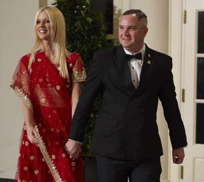 不過,薩拉西夫婦衣著筆挺:男士穿著黑色的晚禮服,女士一襲紅色的沙麗,而且神態(tài)從容。也許是優(yōu)雅的外表,使他們不僅通過檢查進入白宮,而且還和其它來賓、包括美國副總統(tǒng)拜登、白宮幕僚長伊曼紐爾和華盛頓市長芬蒂在內的人交談、合影。