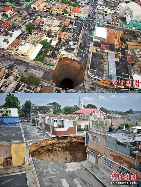 中新網(wǎng)6月2日電 據(jù)外電報道,熱帶風暴“阿加莎”橫掃中美洲,到目前為止已造成至少180人死亡。受到連場暴雨影響,危地馬拉城一處出現(xiàn)地面下陷,形成一個深60米、直徑30米的地洞,專家表示,雖然還沒有對該地洞的形成做出最終解釋,但可以肯定的是,這不是地質變動,不是地震的表現(xiàn)。