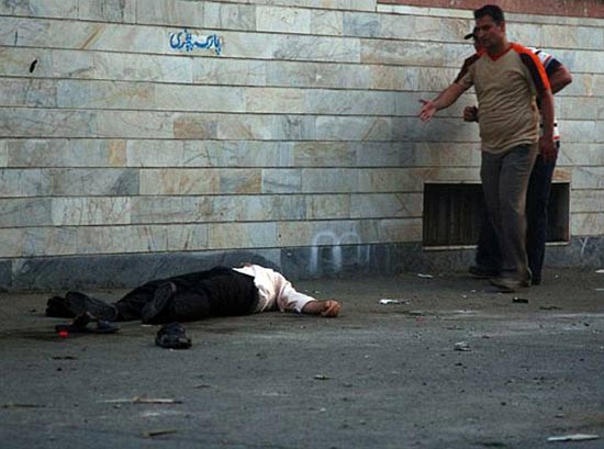 據(jù)英國《泰晤士報》、《每日郵報》、美國《時代》雜志6月18日報道,伊朗大選后的騷亂已經(jīng)進(jìn)入第5天,大約有50萬抗議者涌上街頭,抗議大選結(jié)果。遠(yuǎn)在韓國參加世界杯資格賽的伊朗國家隊(duì)球員也在比賽中戴上綠色腕帶力挺穆薩維。但令人感到恐怖的是,根據(jù)微博客Twitter上發(fā)布的照片,德黑蘭街頭近日出現(xiàn)被打死的抗議者的尸首。