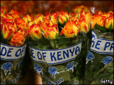在非洲的肯尼亞,蔬菜和鮮花是肯尼亞的主要出口商品,占該國經(jīng)濟收入的百分之二十。奧塞林農(nóng)場是肯尼亞最大的鮮花農(nóng)場之一,每天出口一百多萬枝玫瑰。但是今天這里的工人沒有象往常那樣忙碌地包裝鮮花,卻在拆開玫瑰花的包裝盒。這些玫瑰本來在裝箱后應(yīng)該運往歐洲的市場。
