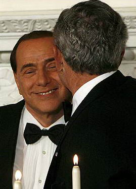 布什和貝盧斯科尼在舉杯后互碰面頰,布什總統(tǒng)還愉快地致了告別辭。一位官員稱:“政治家們表現(xiàn)得如此親密是不多見的,他們看起來更像是好友而不是世界領(lǐng)導人!
