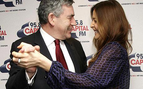 英國(guó)首相戈登·布朗11日出席倫敦一家廣播電臺(tái)的開(kāi)業(yè)大典,與被稱為“英國(guó)保養(yǎng)最好的模特”的麗莎·史諾頓共舞。風(fēng)度翩翩的首相立刻迷倒一大片女性觀眾。