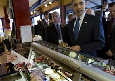 奧巴馬忙里偷閑,東看西看,他買(mǎi)了一條鑰匙鏈,還四處尋找有沒(méi)有中意的水晶球,不過(guò),他逛市場(chǎng)最主要的目的,是要替兩個(gè)女兒買(mǎi)餅干,他替女兒選了一些楓葉造型的點(diǎn)心,店家不愿意收他的錢(qián),一行人逛完準(zhǔn)備離開(kāi)的時(shí)候,一名婦人捧著渥太華一種名叫“海貍尾巴”的特色點(diǎn)心,請(qǐng)奧巴馬品嘗。