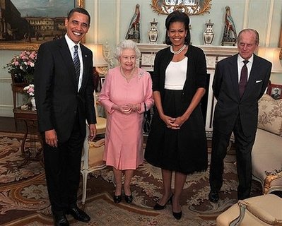 中新網(wǎng)4月2日電 美聯(lián)社消息,在倫敦參加20國(guó)集團(tuán)峰會(huì)(G20)的美國(guó)總統(tǒng)奧巴馬夫婦當(dāng)?shù)貢r(shí)間1日與英國(guó)女王伊麗莎白二世及王夫菲利浦親王舉行會(huì)晤。