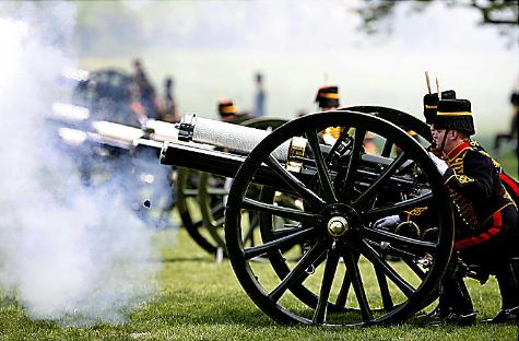 為慶祝英國(guó)女王伊麗莎白二世83歲的生日,英國(guó)皇家騎兵炮兵連在倫敦海德公園鳴放41響禮炮,來(lái)為女王慶生。這一天女王和丈夫菲利普親王待在溫莎城堡,沒(méi)有公開(kāi)的行程。