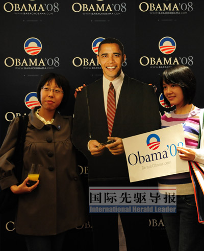北京宴會廳內(nèi),那塊孤獨的麥凱恩人像看板說明了一切。無論中國人還是美國人,都爭相與奧巴馬的人像板勾肩搭背,合影留念,麥凱恩的看板卻鮮有人問津。更多的美國人選擇席地而坐,一邊看CNN,一邊期待歡欣鼓舞的時刻能提前到來。