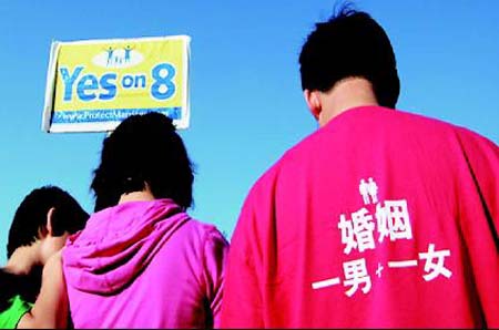在11月4日舉行的美國大選投票中,一項反對同性婚姻的提案因為得到超過半數(shù)選民的支持而獲得通過。這一被稱為“8號提案”的加州立法提案在選舉之前引起廣泛關注:投票結果顯示有大約52.5%的加州選民支持這一提案,而選舉結果的公布也意味著在加州實行了幾個月的同性合法婚姻制度的夭折。