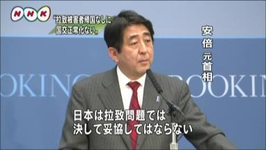 據日本NHK電視臺18日報道,日本前首相安倍晉三在美國華盛頓演講時明確指出,關于人質綁架問題日本絕對不會就此妥協(xié)。只要享有人權的被綁架者歸國無法實現(xiàn),日本不會同朝鮮恢復邦交正常化,而朝鮮跨越日本領土發(fā)射導彈的挑釁行為絕對無法容忍。
