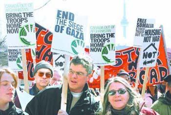 加拿大今天也出現(xiàn)示威活動(dòng)。當(dāng)?shù)仉娨暸_(tái)報(bào)道,多倫多大約有1000人抗議議會(huì)上周作出的延長在阿富汗駐軍的決定。