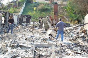 圣地牙哥紅十字會的發(fā)言人?蠅(Gayle Falkenthal)也是受害者之一。她駕著她的1991年豐田轎車從斯克瑞普斯農(nóng)莊的家中逃出來,車上裝滿了貴重的個人物品。她在圣地牙哥的一位朋友家借住一宿,早晨醒來卻發(fā)現(xiàn)她停在外面的車已被洗劫一空。