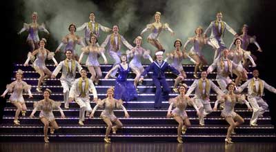 “42街”是橫貫整個百老匯的一條大街,云集著幾十家劇院和上千名音樂劇演員。在那里,每天都上演著歌舞升平、星光燦爛的奢華景象。而在音樂劇《42街》中,將百老匯42街搬上劇場,以演員在街頭舞蹈的場面呈現(xiàn)百老匯的繁華與輝煌。燈火輝煌的百老匯42街,劇院林立,演員精神飽滿。20級的霓虹階梯上,54名年輕的演員們正在跳著歡快的踢踏舞,金光閃閃的服裝令人應接不暇。他們整齊而隨性的動作,咔咔作響的舞鞋,每一個聲音和每一個舞步都能讓人陶醉。這種純粹的、美式的、壯觀的踢踏舞群,完完全全把美國的繁華耀眼展示了出來。閃亮如星的布景、華麗炫目的服裝,盡顯的都是百老匯舞臺劇中的奢華主義。(張學軍)