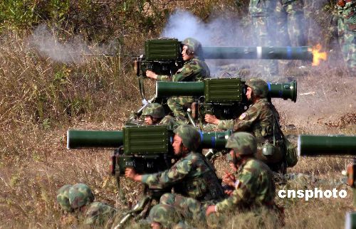 11月1日,“鐵拳-二00七”實(shí)兵檢驗(yàn)性演習(xí)進(jìn)入戰(zhàn)斗實(shí)施階段,被譽(yù)為中國(guó)“鐵軍”的參演部隊(duì)濟(jì)南軍區(qū)某機(jī)步師演練了火力準(zhǔn)備、沖擊突破、抗敵逆襲、分割圍殲等內(nèi)容,并進(jìn)行了實(shí)打?qū)嵄菥,展示其王牌部?duì)的威力。中新社發(fā) 曾憲平 攝