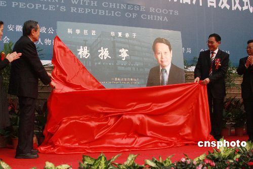 2007年11月14日,《科學(xué)巨匠、華夏赤子--楊振寧》明信片首發(fā)儀式在安徽省合肥市科技館舉行,楊振寧攜妻子翁帆出席。這套明信片共有30張照片,這些照片中不僅有楊振寧和國(guó)家領(lǐng)導(dǎo)人的合影,以及他獲得諾貝爾獎(jiǎng)時(shí)的照片,還有楊振寧與翁帆在青海踏青時(shí)的照片。中新社發(fā) 從啟 攝